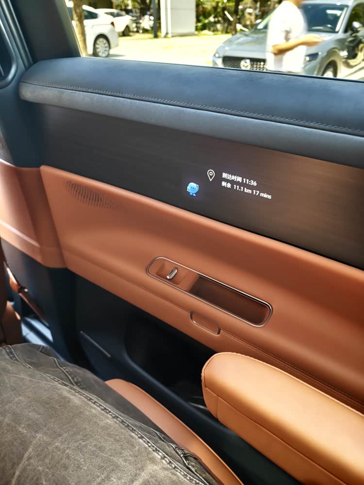 细节上,创新使用的隐藏在木纹饰板下的显示屏,实际显示效果比我预期的更好,总体来说反应很快,也很跟手很清晰。但后排门板屏自动设定的亮度会有点偏暗,需要手动调亮,菜单也比较密集比较小。