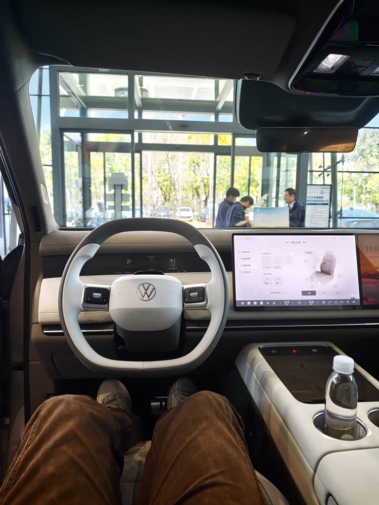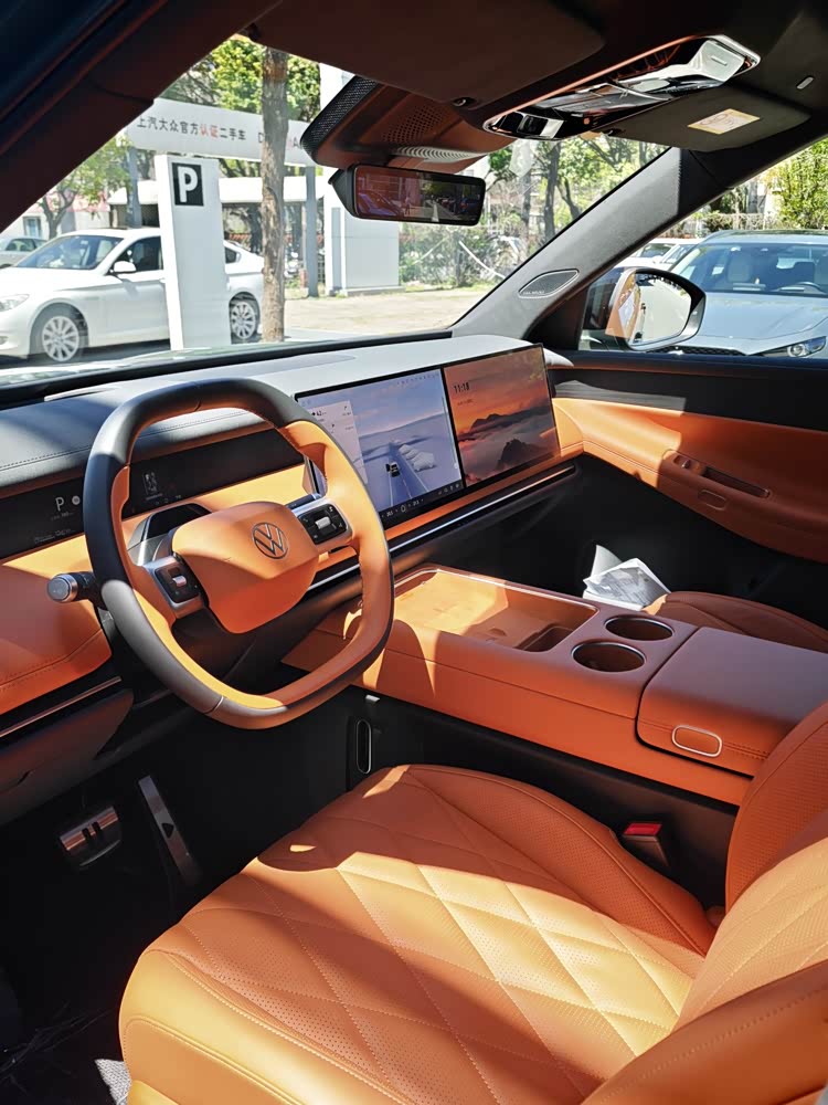内饰总体上还是新能源车的传统风格,与以往的ID.系列是不可同日而语了,平铺直叙的大连屏,简洁的中控与门板设计,和外观一样无功无过,很容易让人适应与接受。配色方面,我觉得还是米色更耐看也更好用,橙内饰在晴天会带来比较明显的后视镜反光,个人不太推荐。