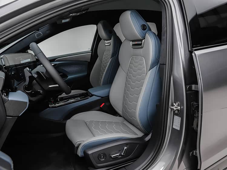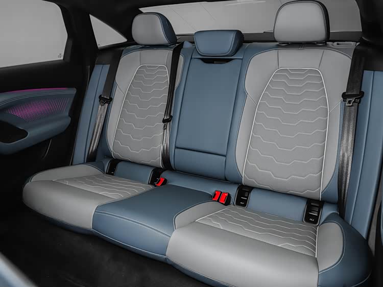 车侧轮廓采用了半隐藏式门把手和双五辐轮圈设计,尾部的贯穿式灯组是亮点之一,内部包含多个可独立控制的发光单元,能够以动态灯光形式展示泊车、导航等不同状态信息,发光的车尾标识也增添了识别度。