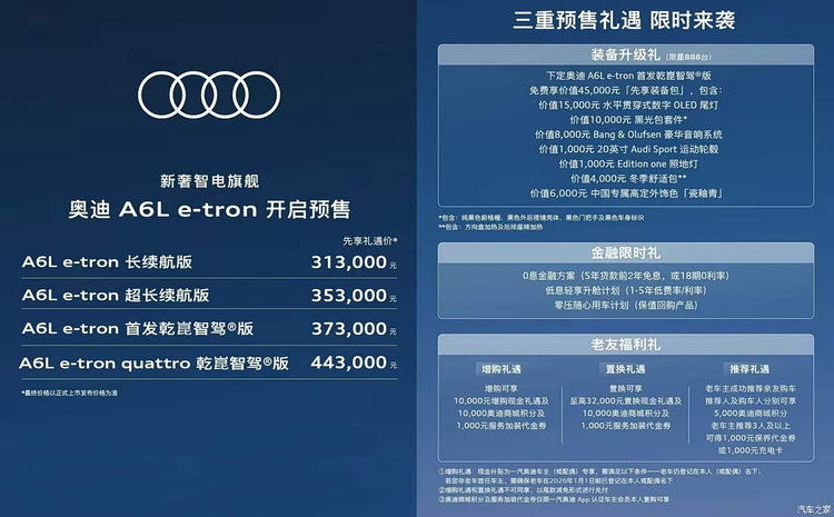 近日获悉,奥迪品牌有两款备受关注的纯电车型确定了上市日期。 奥迪A6L e-tron(参数|询价)与新款奥迪Q6L e-tron的四驱版本,将于4月10日正式推向市场。其中,奥迪A6L e-tron已公布预售信息,价格区间在31.3万元至44.3万元,并伴随一系列购车方案。