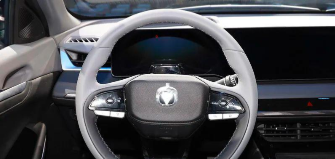 内饰方面,锐程PLUS采用了家族式设计,环绕式的内饰布局我们不会陌生,科技化的内饰一直都是长安汽车的风格,左侧是三幅式多功能方向盘,前方仪表盘和中控显示屏采用了一体式设计,下方还采用了全新的电子挡把。用料方面运用了大量的软性材质以及镀铬装饰的点缀,档次还是不低的。同时在空调出风口的下方是手机无线充电卡槽,可以看到在底部分还有通风功能。