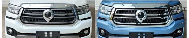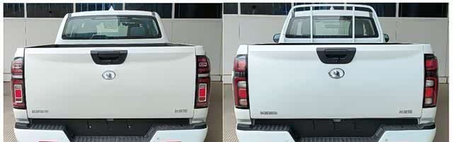 从外观来看,新车型前脸部分有所改变。新车型可以选择两种前格栅造型。一种是基于老款炮商用皮卡的菱形格栅造型,两侧与前大灯相连。还有一种是有点类似长城炮乘用皮卡全球版的前脸造型,车标丰盈,上下两个立体长方形造型比较霸气,两侧也与前大灯连接贯通。此款新造型还可以选择黑色中网和银色中网。