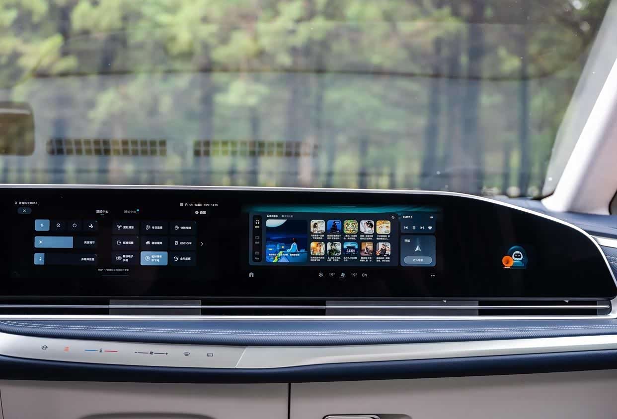 事实上,驾驶一辆高端MPV,总是很容易被当成司机,那是因为早年高端MPV更聚焦于商务市场。而MIFA9涵盖了商务出行和家用属性的多重需求,也更加照顾驾驶员的感受。当你坐进驾驶舱时,瞬间有一种被科技感围绕的感觉。中控大屏由3块联体大屏组成,每一块屏都可以独立工作。再加上触手可及的柔软材质、随处可见的镀铬装饰条,又进一步提升了驾驶舱的档次感。