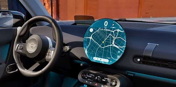 事实上,这款电动MINI COOPER的内部采用了大量圆形元素,不仅经典,而且也极其的实用,甚至还可以选择HUD数字抬头显示功能,实用性出色。而圆形中控屏幕可以搭配各种各样的投影样式,也极具可玩性。
