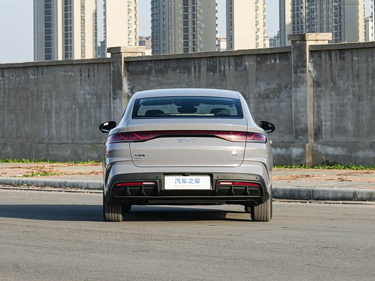 车尾配备贯穿式尾灯组,下侧设有“BYD”英文车标,后保险杠两侧带有扩散器造型。该车定位为中型车,长宽高分别为4830/1900/1495毫米,轴距为2790毫米,可满足日常家用空间需求。