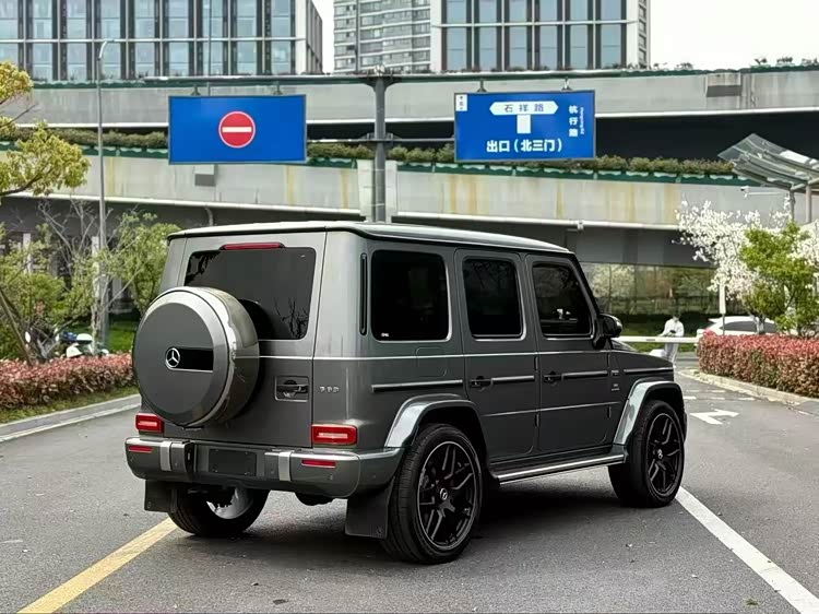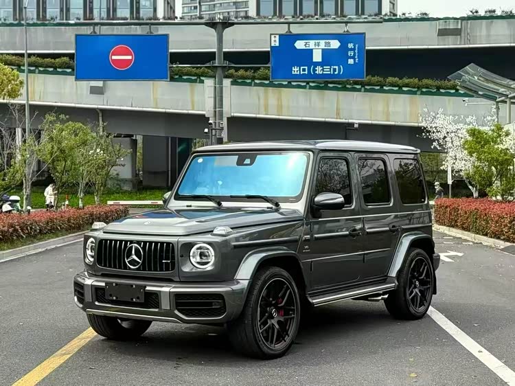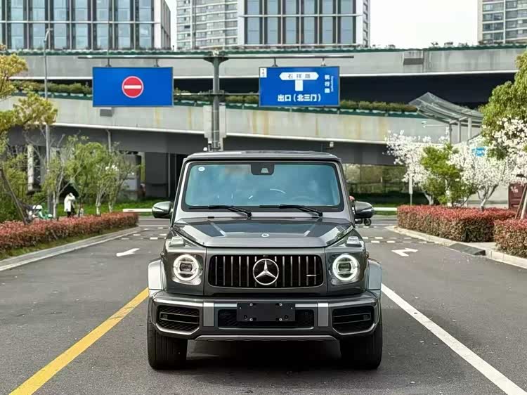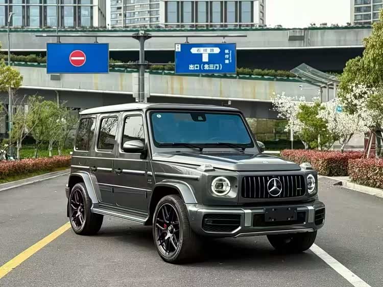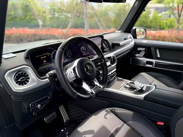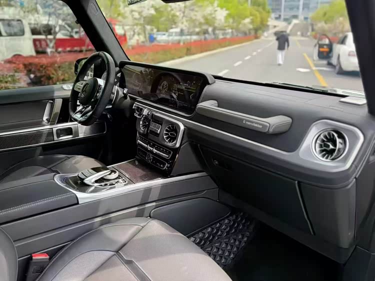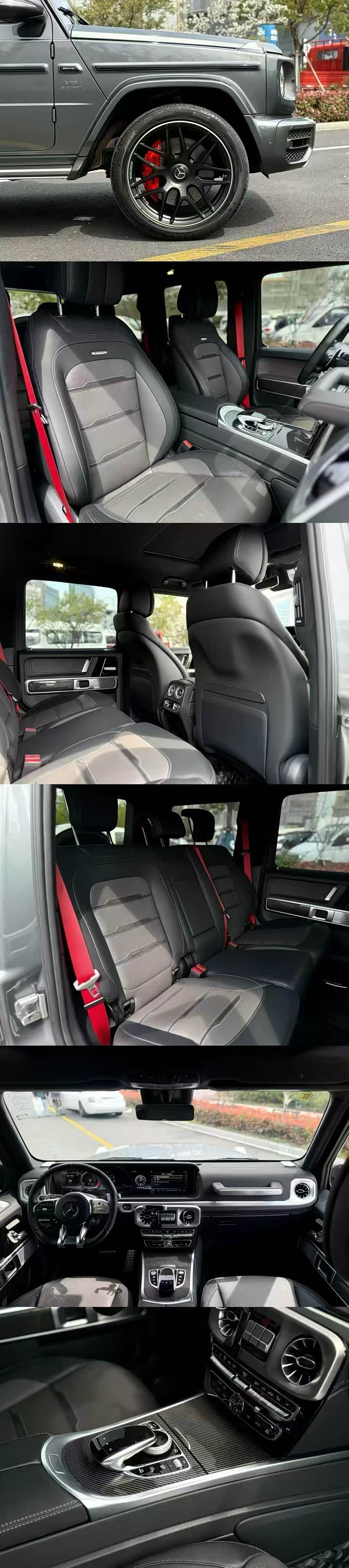 23年奔驰AMG G63,月光石灰外观/珠光钛灰色黑色双拼内饰,配置:SC组件,碳纤维内饰,柏林之声音响,动态座椅带通风加热按摩,熏黑轮毂等一手过进