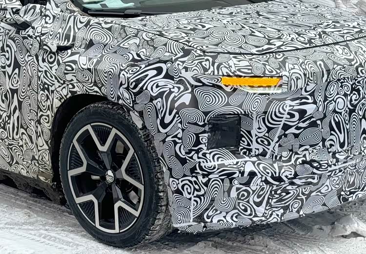 车身侧面同样有看头。前后短悬设计让车身姿态紧凑干练,配上“Y型”五辐双色轮圈和半隐藏式门把手,整体比例协调舒展,没有某些电车为了硬拉长轴距而显得臃肿的毛病。车尾则配备了车顶扰流板、高位刹车灯和后雨刷,尾灯预计延续贯穿式设计,与前脸呼应。