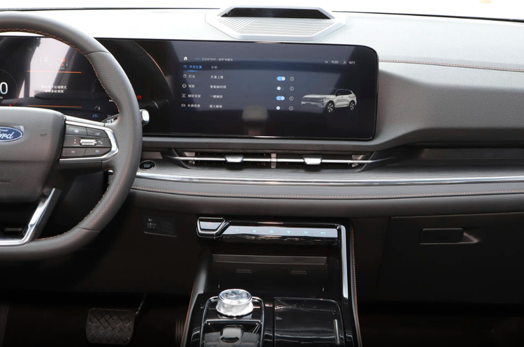 来到车内,可以看出福特领睿的内饰采用了简洁且规则的设计风格,中控台经过平直线条的勾勒营造出不错的层次感。两块12.3英寸的悬浮大屏,搭配的还是高通8155芯片,反应特别流畅,划地图、切软件基本不卡顿。车机用的腾讯TAI 4.0系统,自带微信车载版、QQ音乐、爱奇艺这些常用软件,跑长途时孩子在后排看看动画片,路上也不闹腾。