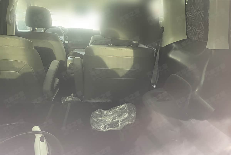 车辆内部目前仍然处于高度保密的状态,大部分区域被严密遮挡。不过,我们还是能从缝隙中窥见一些信息。驾驶员前方配备了一副双辐式设计的方向盘,而换挡机构则采用了怀挡形式。中控区域预计会搭载一块尺寸可观的中控屏幕,这是当前车型提升科技感的主流方式。更重要的信息在于座椅布局,谍照清晰地显示了车内采用了2+2+2的六座配置。每一张座椅看起来都相当厚实,旨在为所有乘客提供较好的承托,但具体的功能配置,例如是否具备通风或按摩,还需要等待官方后续的公布。