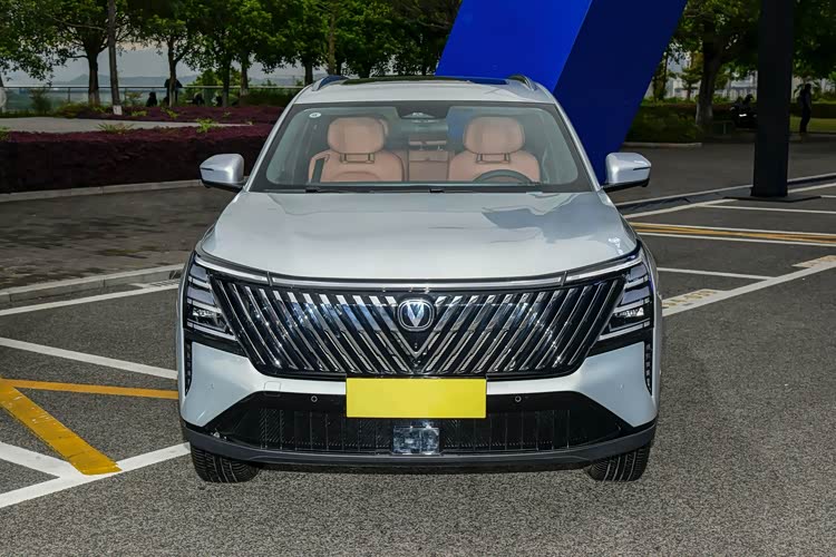 为了方便和燃油版车型区分,长安CS75 PLUS HEV车型在外观方面进行了调整,前进气格栅由中间的V形车标向两侧延伸,和两侧的大灯组连接在一起,视觉上突显出整车的宽度,长安CS75 PLUS HEV采用两段式中网,下部分设计在前保险杠上,具有更高的散热性,在中间位置还配备了ACC雷达模块,搭配车头前方的摄像头,提升了辅助驾驶的精准性。