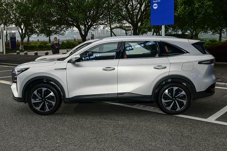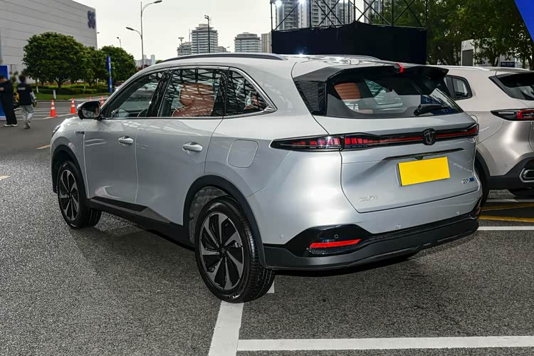 车身侧面的比例和燃油车版车型保持一致,同样也是在细节部分进行调整,前后均采用双层玻璃,隔音方面有很大的提升,坐在车内会更安静,门把手听取了用户的建议,从隐藏式改为机械式,用起来确实方便很多,而且不用担心有故障率。车尾部分取消了双边四出的排气造型,毕竟这是一台油电混动车型,四个排气筒看起来会有违和感。