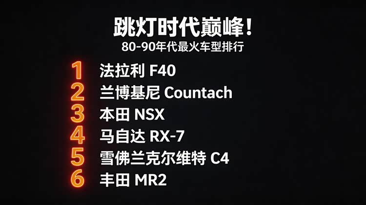 跑车本来就有人缘,自打用上跳灯之后,回头率加倍,但跳灯并不是哪一个品牌的专利,所以,其他厂商看到跳灯如此受欢迎,纷纷加入了跳灯行列。巅峰时期,几乎所有做跑车或性能车的品牌,都生产过跳灯车型,如果不生产跳灯跑车,会被大伙认为太LOW了,跟不上时代,所以说,1985-1995年,是跳灯的最巅峰时期,同时,也是港片的巅峰时期,就好像角色塑造一样。