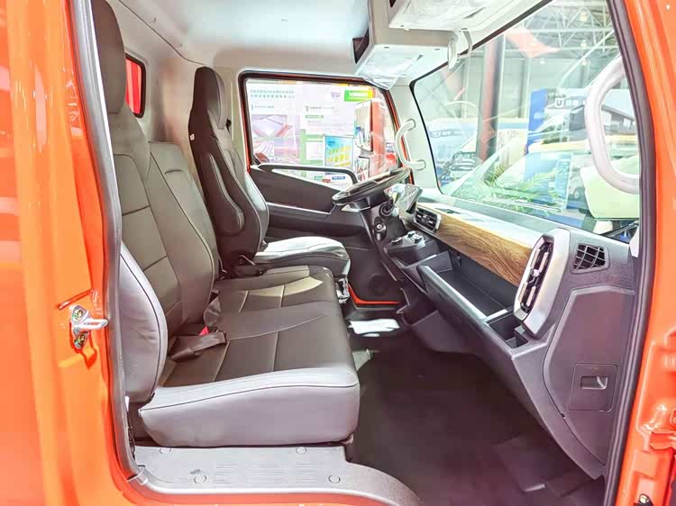 接下来进入车内,零米轻卡金米版长续航的驾驶室采用贯通式结构,大平层仪表台,活动空间充裕。