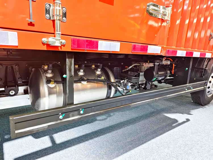 车辆采用冲焊一体式后驱桥,截面尺寸110×110×8mm,载荷5t,承载能力提升10%。配合高强度车架和板簧,整车承载能力实现全方位提升,为用户带来更高的盈利能力,助力车老板赚得盆满钵满。