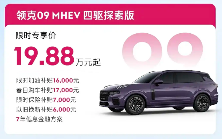 第一名:领克09 MHEV 四驱探索版