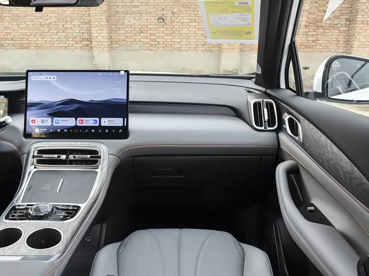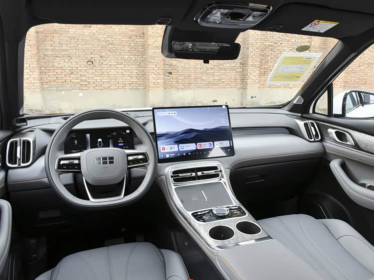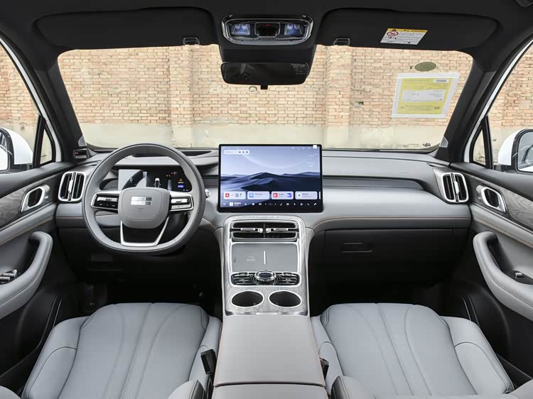 进入车内,银河M7的内饰布局以年轻化和实用性为导向。中控台配备了全液晶仪表盘和悬浮式的中控大屏,同时保留了一些物理控制旋钮,兼顾了操作的便捷性。车机系统方面,新车搭载了Flyme Auto系统,在智能交互和生态扩展方面有所侧重。