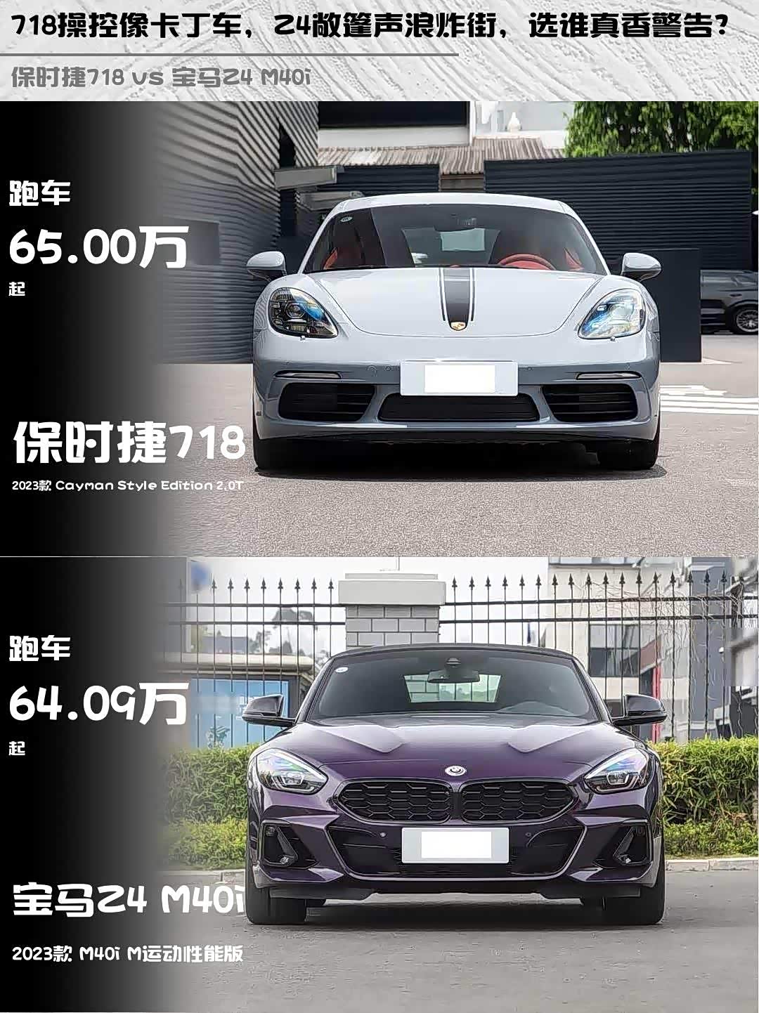 车家号·0浏览·2026-04-05 08:53 · 北京保时捷718 Cayman Style Edition 2.0T vs 宝马Z4 M40i(参数|询价) M运动性能版,谁才是你的Dream Car?🤔