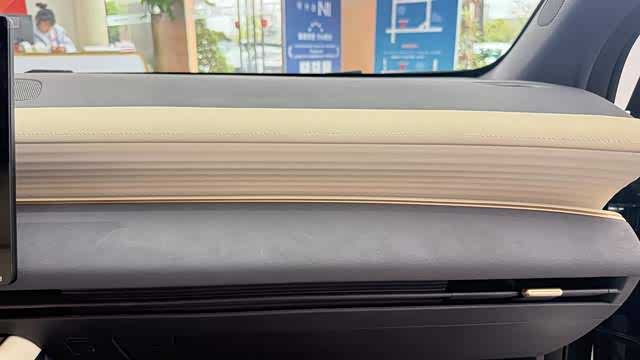 说回产品本身的话。从静态角度来说,日产N7首先在尺寸、做工用料上确实会比N6好上一些,如果要说优点,比较明显的就是继承了日产油车舒适的座椅,并且在内饰的用料上,基本都给到了软性材质的包裹,并且从后排的乘坐体验感上来说,H点也比较合适,不会让人一坐上去就感觉地台偏高,坐垫长度也不错;另外一些基础舒适性配置还是到位的,前排有座椅通风/加热/按摩,车机操作也没有明显卡手的情况。