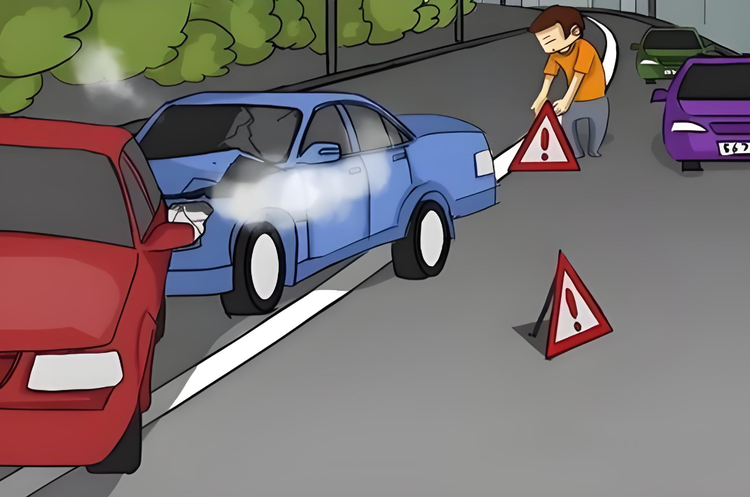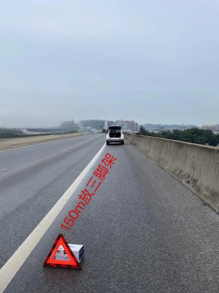 如果徐先生有点常识的话,应该做的事情是先放置警示标志,随后让所有车内人员撤离到应急车道护栏以外的安全区域里,但是徐先生一样都没做对。