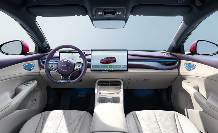 内饰方面换装了电子怀挡设计,中控区域更简洁,腾出了更多储物空间。配备15.6英寸悬浮式中控大屏、10.25英寸仪表屏和W-HUD抬头显示,车机升级到了DiLink 150系统。