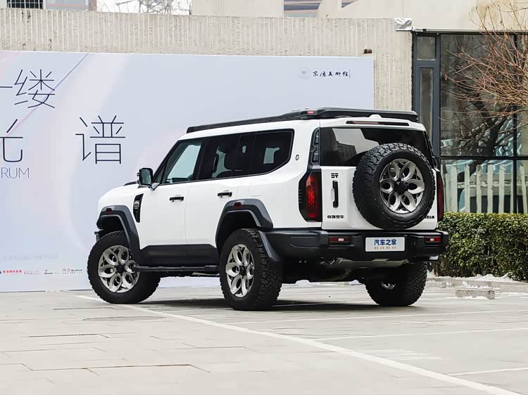 再来看车身侧面部分,车身侧面是纵横G700最迷人的角度,笔直硬朗的腰线贯穿头尾,如同雕刻般的线条勾勒出强烈的力量感。外扩式黑色轮眉自带宽体效果,搭配20英寸熏黑防脱圈轮毂与275/60 R20全地形AT胎,不用改装就有原厂越野范儿。车身尺寸方面,5198×2050×1956mm的长宽高,搭配2870mm的轴距,让它拥有标准的中大型SUV体格,庞大的车身自带威严感。车顶行李架、侧踏、悬浮式车顶等元素,既有硬派的粗犷,又不失现代SUV的时尚。