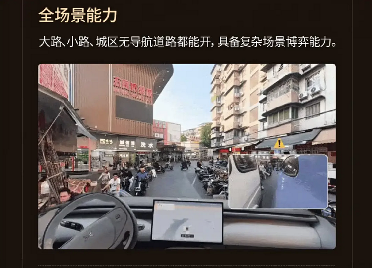 此次升级中,一个较为关键的变化是城市无导航NGP功能的引入。与此前需要依赖导航路径的辅助驾驶模式不同,新版本支持在未设定导航的情况下进行城市道路行驶。系统可基于实时环境信息,对道路类型、交通信号以及周边车辆状态进行分析,从而完成直行、转弯以及变道等操作。从使用场景来看,这一功能更贴近日常短途出行,例如临时变更路线或非固定通勤路径时,减少用户对系统设置的依赖。不过从技术边界来看,该功能仍然依赖高精度感知与稳定算法支持,在复杂路口或极端交通环境下,驾驶员仍需保持接管准备。