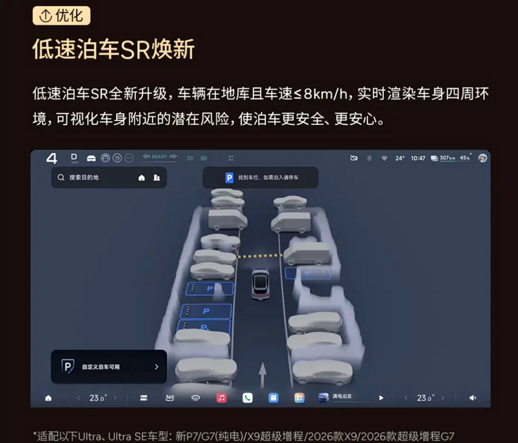 在泊车功能方面,天玑AIOS 6.1.0对界面显示与操作流程进行了同步优化。系统通过对园区及停车场环境进行3D建模,使终点车位及收藏车位在中控屏中的显示更加直观。结合效率泊车功能,车辆在识别到可用车位后,路径规划更为简化,减少反复调整的过程。从实际体验来看,这类优化有助于降低用户在狭窄停车环境中的操作压力,尤其是在地下车库或多层停车场场景中,系统识别与执行的一致性更为关键。