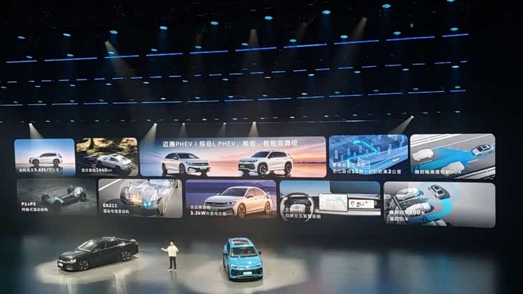 其中迈腾PHEV和探岳L PHEV也颇具看点,动力系统采用1.5T+P1+P3结构,油耗仅需3.65L/100km,综合里程1400km,还拥有全新一代四屏交互座舱、记忆泊车和高速NOA等功能。