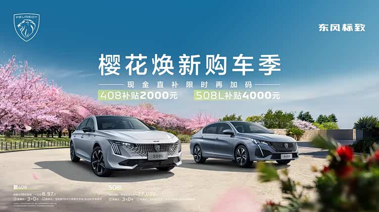 时值春意盎然,樱花绽放之际,东风标致正式启动4月“樱花焕新购车季”车谷消费券补贴活动。4月5日至4月19日期间,消费者购买东风标致新408可享2000元现金补贴,购买东风标致508L则可获得高达4000元现金补贴,限时直补再加码。在这个万物复苏的春季,东风标致以实打实的购车福利与硬核产品力,为用户带来高品质出行新选。