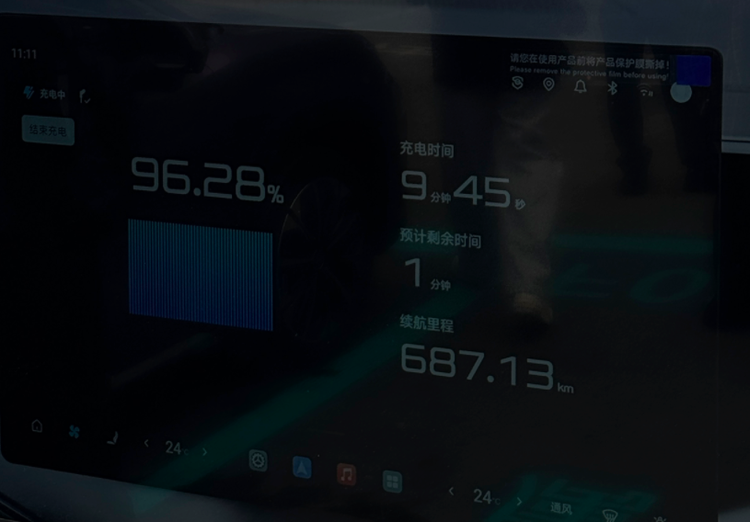 短短9分钟后,电量便达到97%,基本实现“满电出发”。这样的速度,让传统纯电车“充电半小时,续航一两百”的窘境成为过去,补能效率无限接近燃油车加油体验。