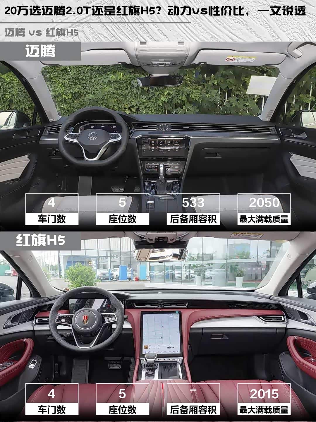 最后说句大实话:20万预算追求驾驶质感就冲迈腾380TSI,想要花小钱办大事的选红旗H5准没错!你们更倾向哪款?评论区见~