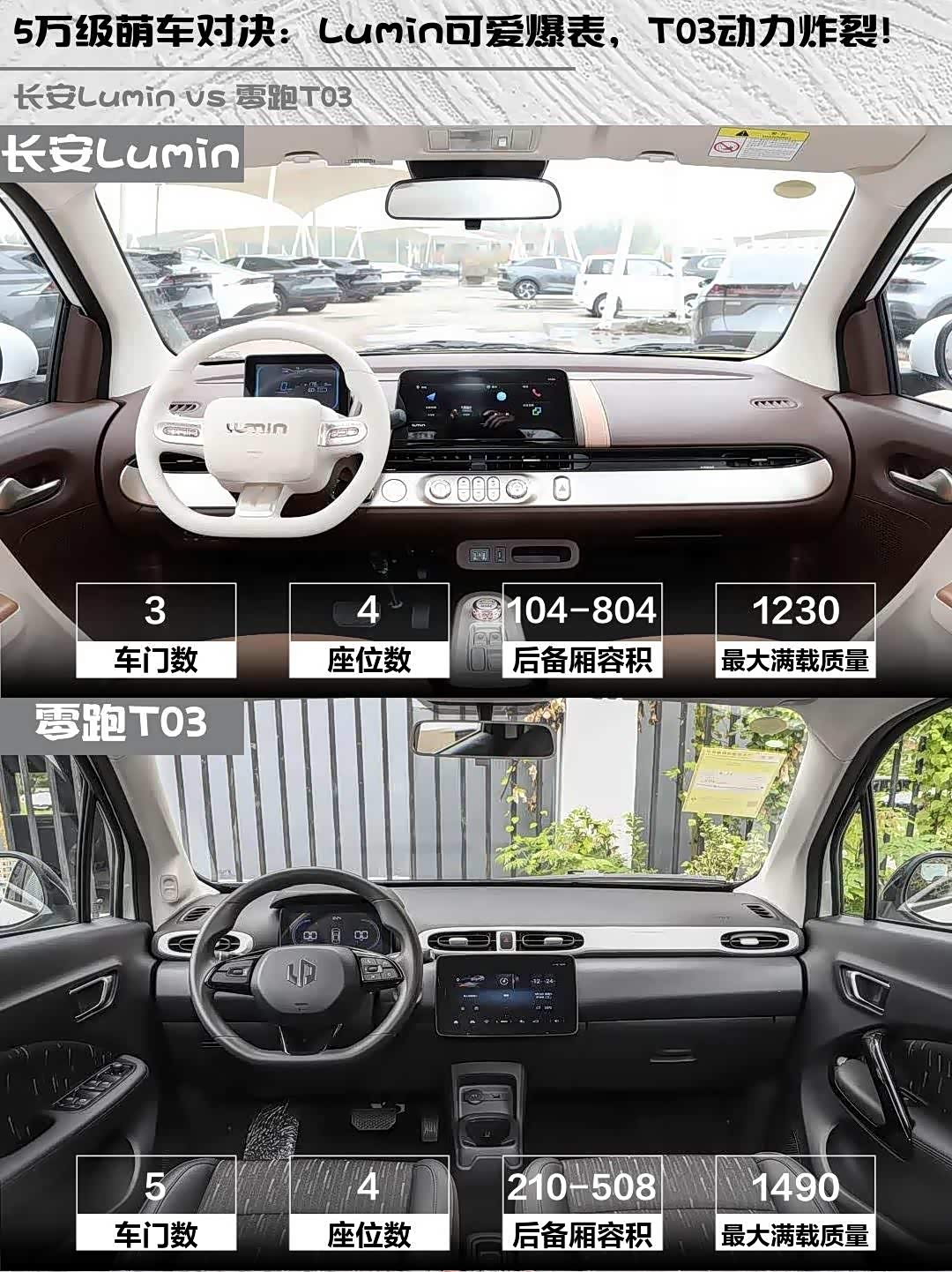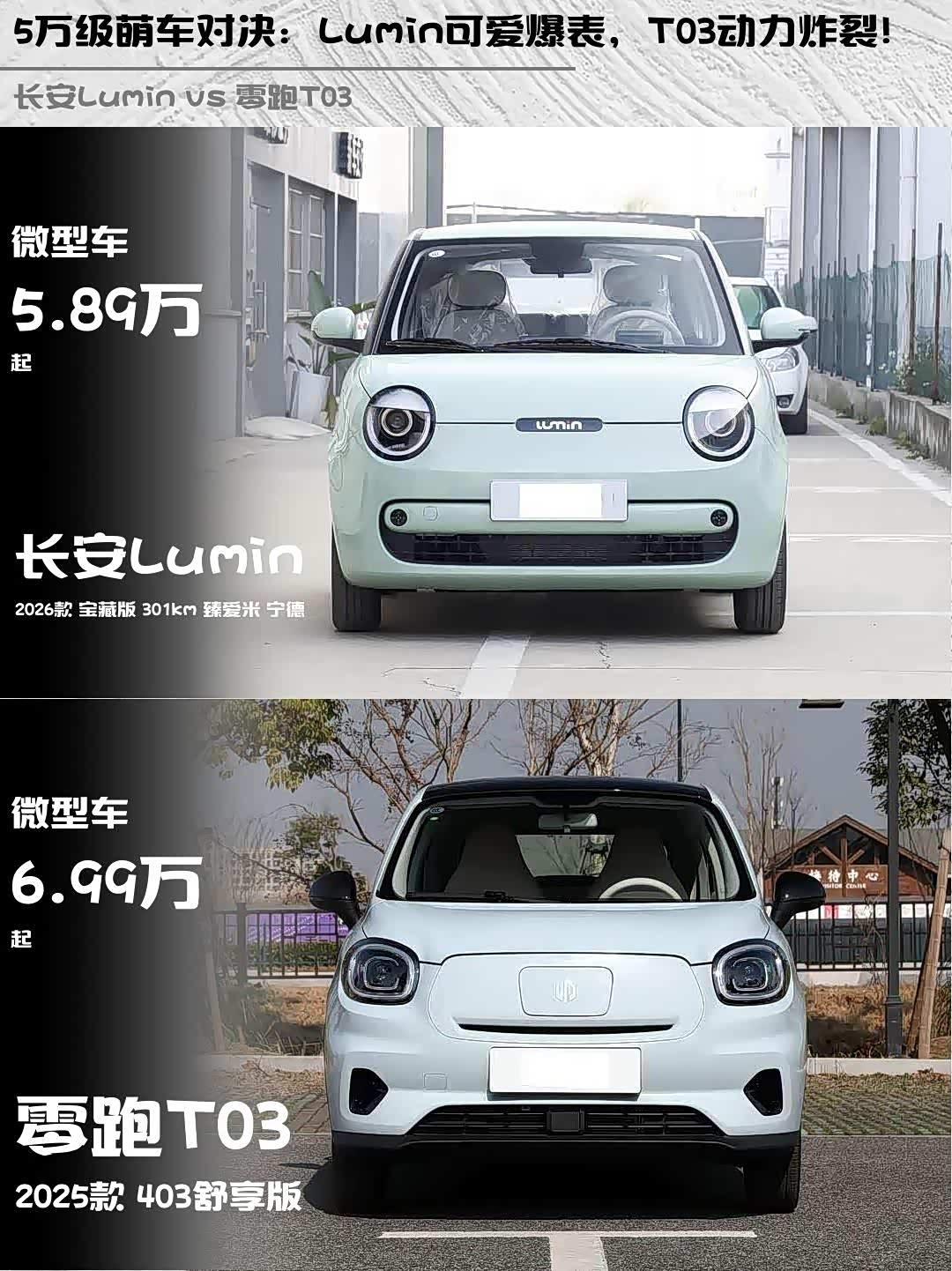 最近在纠结 长安Lumin(参数|询价) 2026款宝藏版和零跑T03 2025款舒享版的小伙伴看过来!👀 作为深度体验过两款车的车主,这篇干货对比一定能帮你理清思路~