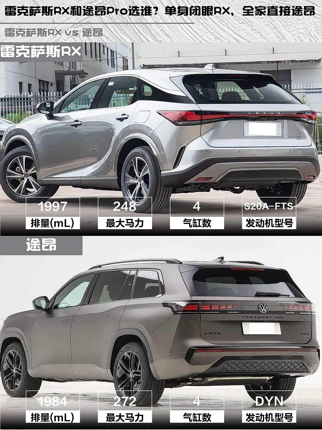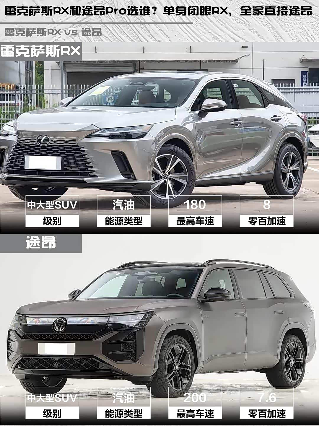 最后说个冷知识:RX四年10万公里免费保修,途昂Pro三年10万公里,日系车后期成本优势你懂的~ 所以你们会pick哪台?评论区见真章!👇