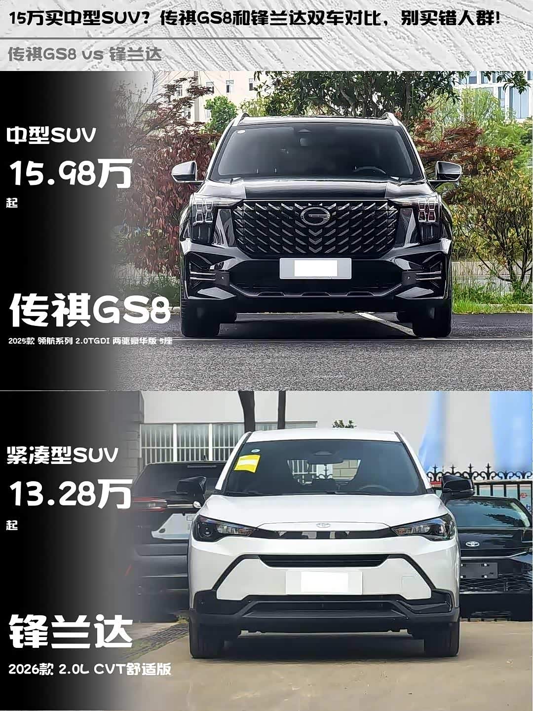 最近在15万级SUV里纠结 传祺GS8(参数|询价)和锋兰达的兄弟看过来!👀 这两台车我都深度试驾过,直接上干货对比,看完你就知道哪台更适合你!🔥
