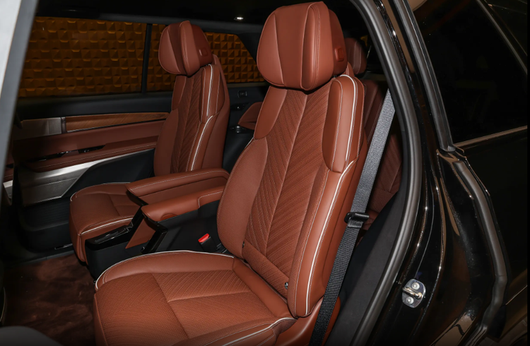 真皮方向盘采用家族设计风格,握感饱满,加入不少镀铬金属材质进行点缀,看着就很高端大气,同时方向盘左右两侧集成的功能也很全面。宽大座椅的乘坐体验足够舒适,同时加持的调节功能也很丰富,第二排搭载专为国内各位大老板设计的“美系大沙发”,坐垫厚实饱满,拥有16向调节功能,同时还配备了两块12.9英寸2K娱乐屏,基本上大家能想到的高端配置都不缺。