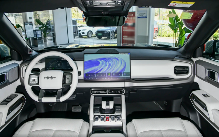 座舱方面的话,方程豹钛3闪充版配备了15.6英寸的多媒体控制屏幕和8.8英寸的全液晶仪表盘,就科技质感而言,显然不算差,而且在中央扶手区域中,车辆还保留了与豹5同款的水晶按键和电子档把,配合后方扶手箱的车载冷暖冰箱,就便捷性配置而言,方程豹钛3闪充版还是比较全面的,配合丰富的智能互联功能,满足我们的日常所需显然是没啥问题的。