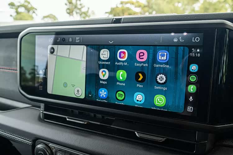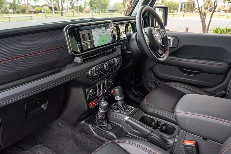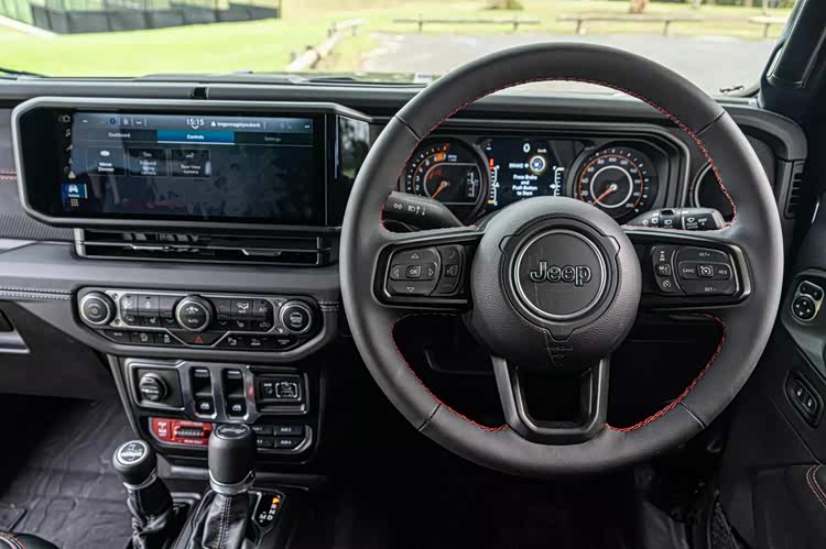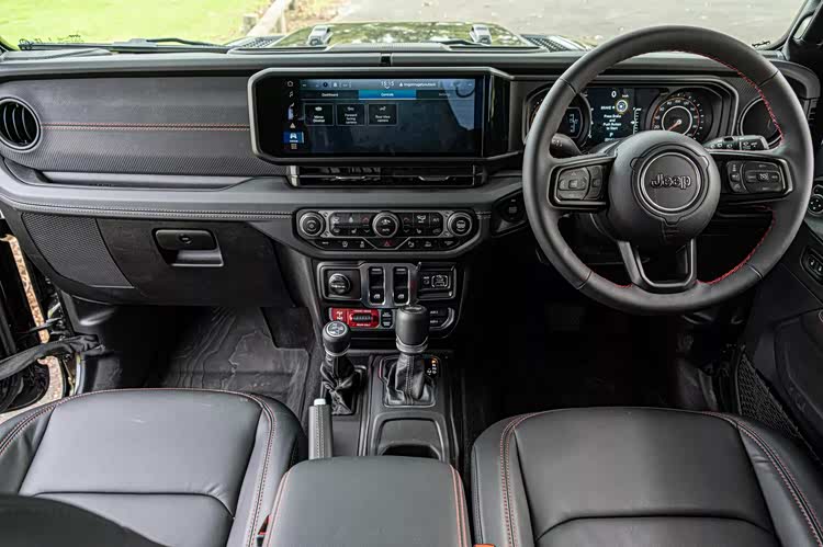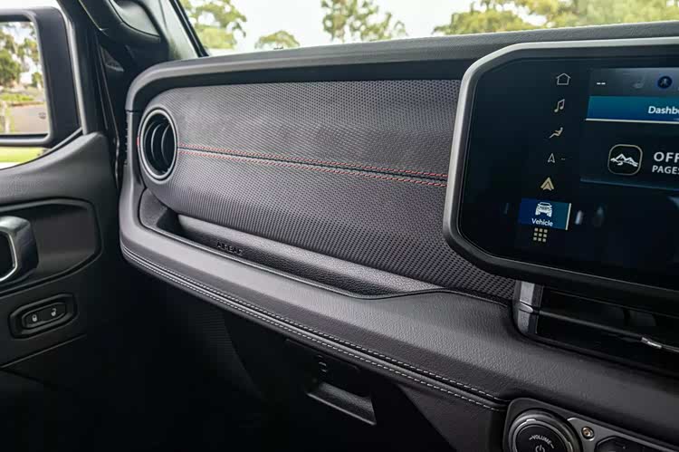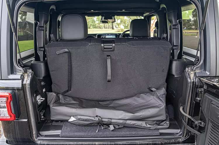 在内饰部分,窄条状的宽屏已经是最具科技感的元素,承担了主要的交互任务,传统的机械式仪表盘令人放心,大量机械式按键,纯机械的挡杆和分动箱杆,也都得到延续,完全的硬桥硬马,副驾驶侧面板加入了虽然硬但特殊质感的面料进行覆盖,增强了一定的时尚感。由于是两门车型,空间方面自然也不存在什么实用性,没有人愿意挤到这样的后排去忍受颠簸。
