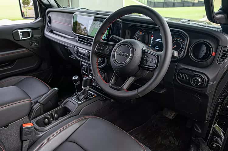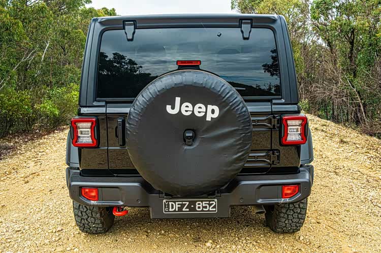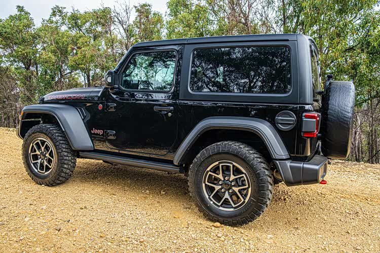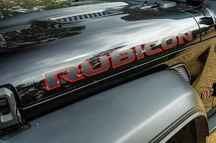 车身侧面,标志性的牧马人方正造型当然得到延续,简单的两门设计,夸张的AT胎,可拆卸式顶棚等元素都不会缺席,大量硬裸露的硬塑料,醒目的Rubicon和Jeep车标等元素,都彰显着硬朗的身份。在车尾部分,小巧的尾灯也传承经典,左开门式的布局不会缺席,巨大的后风挡与时下的流行时尚格格不入,后保险杠部分较大的离去角,裸露的拖车钩,将硬派进行到底。