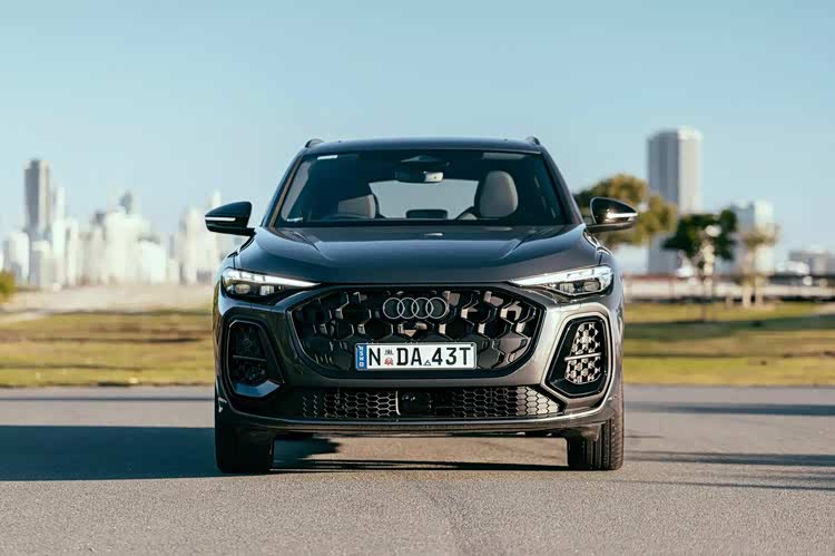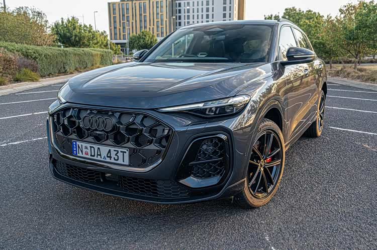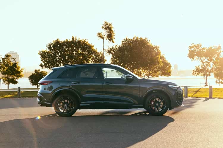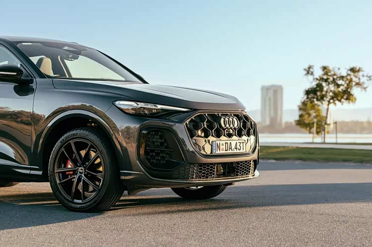 具体来看,外观方面前脸部分当然和普通版本Q5保持一致,国内消费者也不再陌生,多边形的大嘴格栅相对扁平宽阔一些,内部有着稀疏的蜂窝状中网填充,左右两侧引出了锐利的大灯组,深邃的造型堪称一大亮点。前保险杠部分则是梯形下格栅和雾灯区进气道,形成夸张的三段式镂空装饰,由于是海外进口车型,当然不会有什么激光雷达,有更强的一体感。