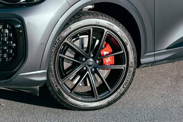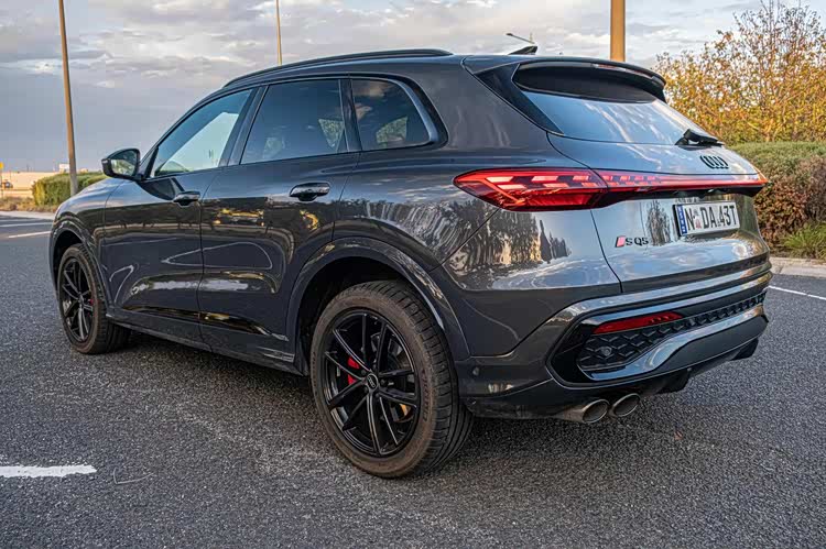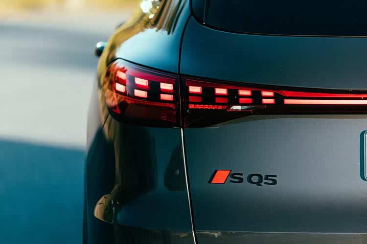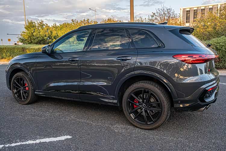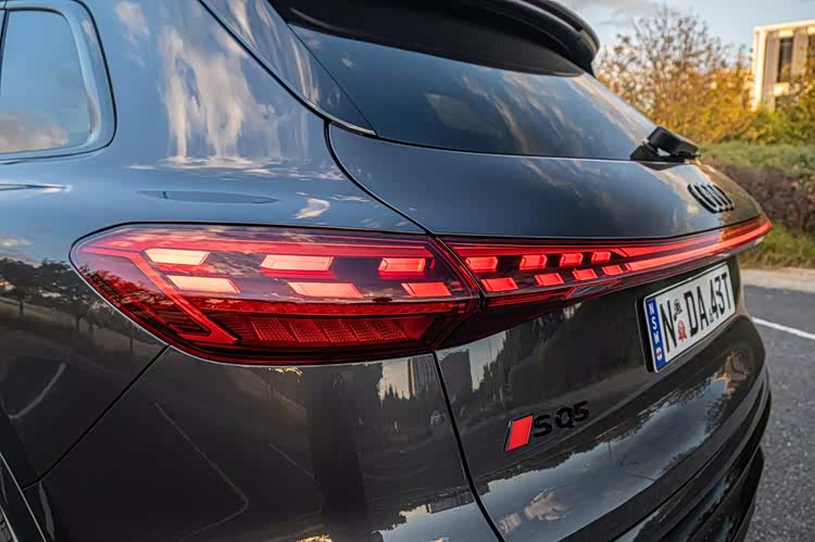 车身侧面,标志性的SQ5线条,更加的流线运动,没有经过加长也更为紧凑,传统车门把手刚好符合国内法规的要求,并不需要任何修改,大尺寸轮毂红色刹车卡钳都不会缺席,银灰色的车漆,也增强了运动的属性,和大面积黑化套件形成呼应。车尾部分,贯穿式的尾灯也和普通版本基本保持相同,车顶扰流板不会缺席,后保险杠部分有着厚实的黑色装饰条和大嘴形成呼应,双边四出排气和尾箱盖左下角的SQ5标志显示了车型的身份。