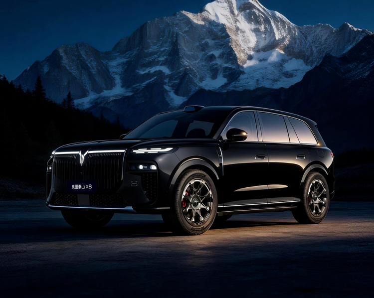 泰山X8提供PHEV和EV两种动力版本。PHEV版本搭载65kWh电池包,纯电续航(CLTC)为370km;EV版本搭载120kWh电池包,纯电续航(CLTC)超过700km。提供800V高压平台和5C超快充,常温下充电至80%需12分钟。
