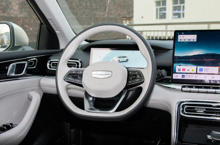 再看底盘,第五代帝豪的底盘调校明显偏向“舒适化”。悬挂初段设定柔软,像是一双厚实的手掌,将路面上的细碎震动一一化解。过减速带时,车身晃动柔和,没有多余的弹跳,营造出一种高级的隔绝感。但这种“软”在动态驾驶中变成了双刃剑。快速过弯时,车身侧倾幅度较大,悬挂支撑性不足导致重心转移明显,方向盘手感也偏轻且虚位较多,路感模糊,驾驶者很难建立清晰的极限感知,整体风格更像是在云端漫步,安逸却缺乏参与感。