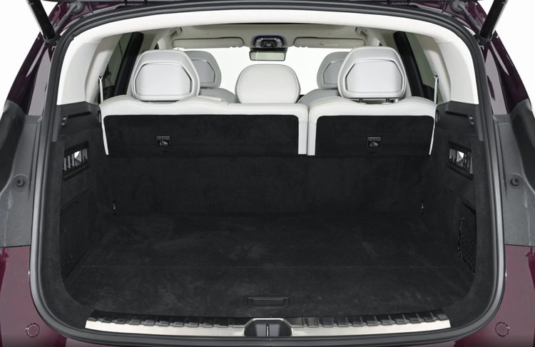 值得一提的是,打开后背门之后,你会发现极氪8X拥有一个非常宽大的行李舱空间,而这也是因为该车将更多的空间让给了后备箱,所以在常规状态下,极氪8X的行李舱容积就已经超过1100L。不仅如此,极氪8X的后备箱配置也很丰富,例如两侧都有单独的挂钩和补光灯,同时还提供了座椅电动调节按键和空悬控制按键。另外,右侧还提供了12V电源、220V电源接口以及2200W的车内外放电功能。而在行李舱盖板下方,极氪8X也提供了下沉式储物空间。