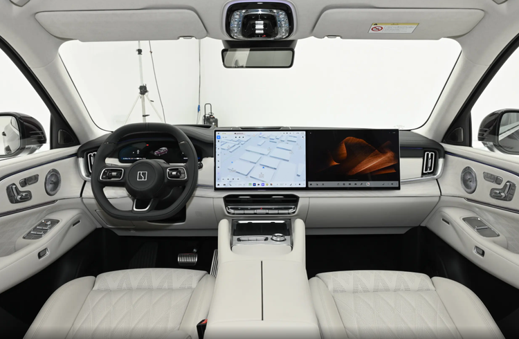 坐进车内,极氪8X的内饰设计与极氪9X有一些相似之处,例如均采用了中控屏+副驾屏的双联屏设计,同时整个T字型岛台的布局也大差不差。值得注意的是,极氪8X的副仪表台两侧新增提升驾乘人员稳定性的扶手,同时中央扶手箱也改为左右均可开启的打开方式。除此之外,极氪8X的座椅电动调节按钮同样是集成在车门板处,除了使用起来更加顺手之外,也能强调车内的档次感。