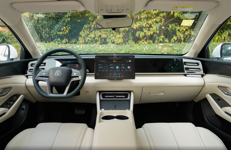 坐进车内,比亚迪秦L DM对12.8英寸的中控屏有很大的执念,2026款车型依旧会在中低配版本中使用,高配车型则是给到15.6英寸中控屏。另外从实拍图中可以看到,比亚迪秦L DM同样采用了贯穿整个中控台的钢琴烤漆饰板,同时电子怀挡除了带来更便捷的操作体验之外,也为副仪表台区域腾出更多的空间可以利用。而在其它配置上,比亚迪秦L DM全系标配540°全景影像,以及基本的定速巡航和自动空调等功能,所以即便是丐版车型也能带来不错的用车体验。此外,标配的6安全气囊同样也会保障用户的日常出行安全。