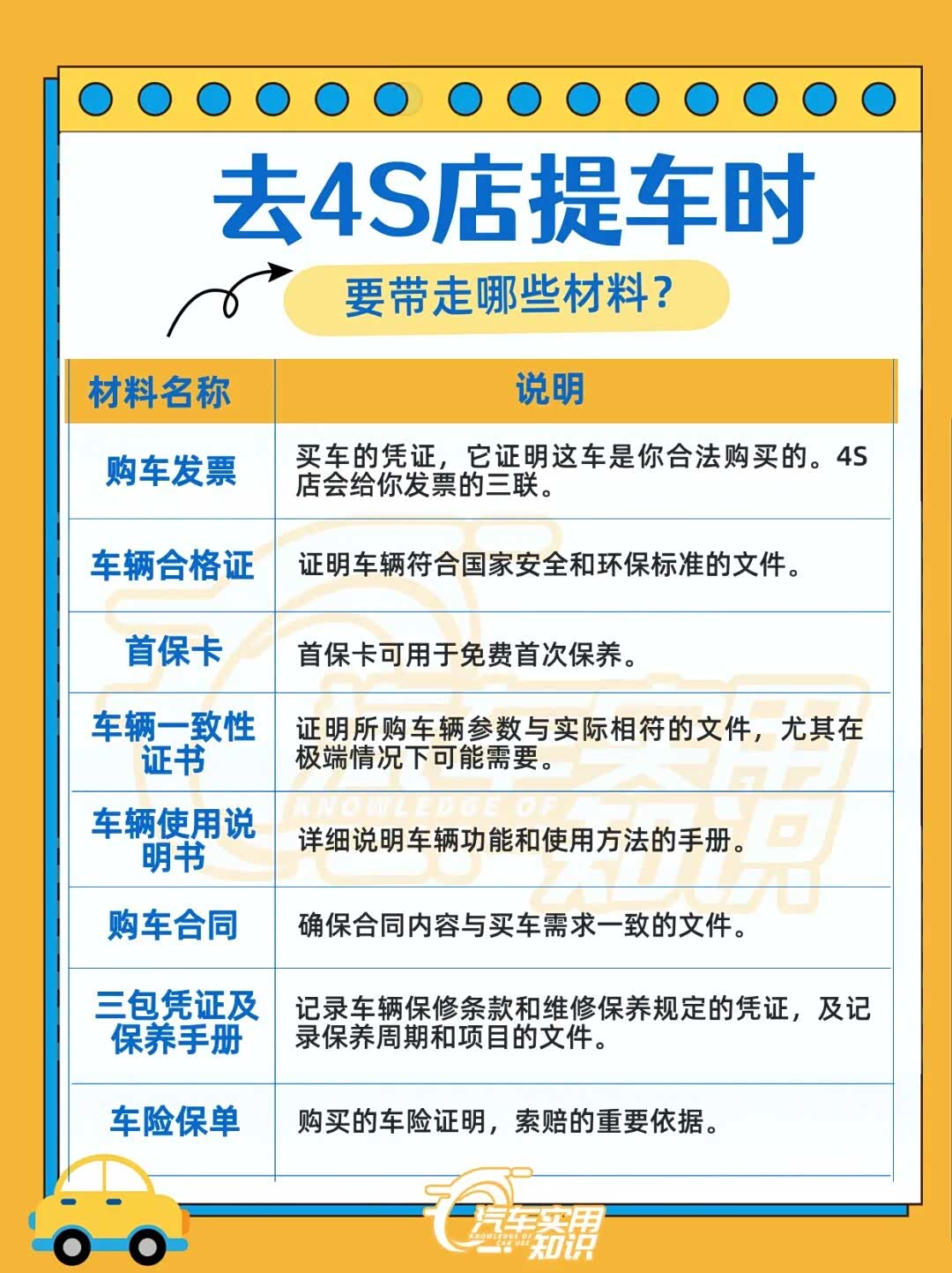 发票合格证合同保险三包资料钥匙