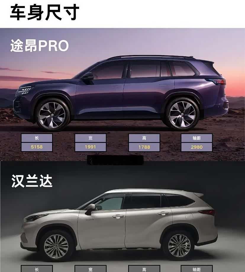 相比之下,同场竞技的汉兰达现款车型设计更偏向城市化和年轻化,虽然也有其拥趸,但那份曾经的霸气感有所收敛。更为直观的是尺寸差异:途昂Pro以5158×1991×1788mm的车身三围和2980mm的轴距,全方位超越了汉兰达(4965×1930×1750mm,轴距2850mm)。这不仅奠定了外观上的气魄,更为内部宽敞舒适的乘坐空间打下了坚实的物理基础。
