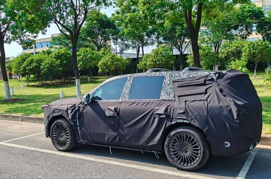 前脸部分,尽管伪装严密,但隐约可见其采用了非常垂直化的设计理念。结合信息推测,一个尺寸可观、造型硬朗的进气格栅极有可能是前脸的核心元素,风格上可能与岚图梦想家一脉相承,旨在营造恢弘大气之感。细长的前大灯组是另一个可辨识的点,谍照显示其采用了激光大灯技术,并极有可能在中间融入贯穿式灯带与可发光LOGO,大幅提升前脸的科技辨识度。尾部设计同样保持神秘,伪装程度与前脸相当,但从轮廓可看出采用了前倾式的后挡风玻璃设计,顶端配备扰流板,尾灯位置显得较为突出,预计会采用当下流行的贯穿式尾灯组,与前脸形成呼应。侧面的装饰线条饱满有力,搭配谍照中清晰可见的22英寸多辐条式大尺寸轮毂,精致与力量感并存,进一步烘托出整车的旗舰商务气质。