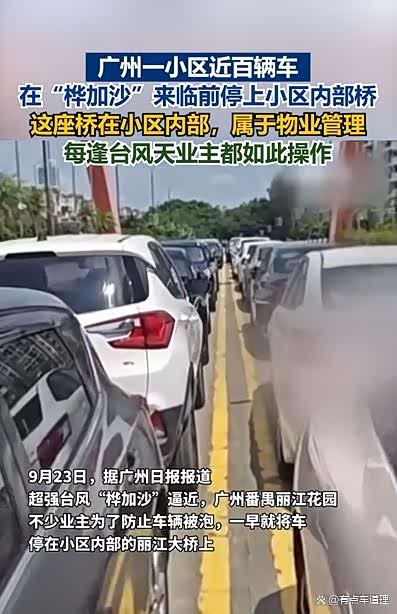 看到广州番禺丽江花园的业主们干了件挺 “无奈” 的事 —— 台风 “桦加沙” 要来了,为了不让车子被淹,近百辆私家车全停到了小区里的丽江大桥上。那场面我看照片都觉得震撼,200 多米长的车龙排得整整齐齐,好在还留了条车道能过车。这事儿一出来,有人说聪明,有人担心不安全,今天咱就聊聊这台风天停车的 “生存智慧”。