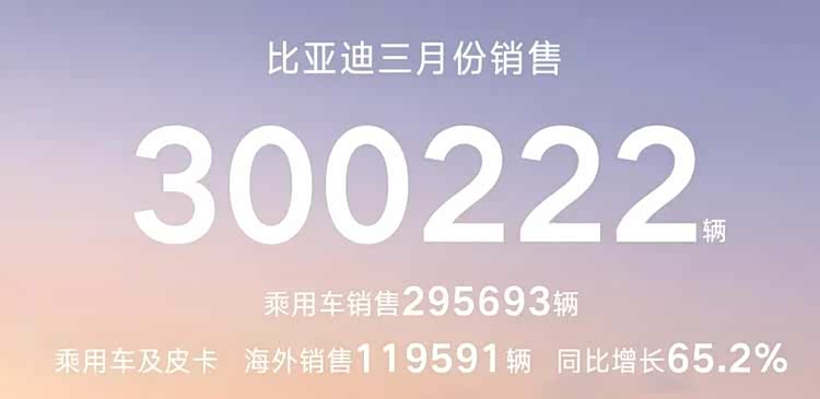 比亚迪3月销量继续领跑自主车企,总销量达到300222辆。其中王朝、海洋系列作为品牌销量主力,单月销量超过26万辆。方程豹3月销量为2.5万辆,腾势汽车7133辆,仰望品牌307辆。